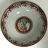 decorated to the exterior with alternate cartouche panels of European hunting scenes and Chinese domestic scenes and to the interior with a border of stylised flowers, birds and scrolls, the well painted with a further hunting scene