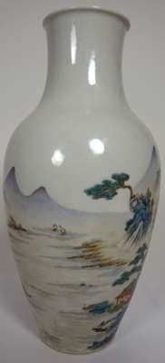 of elongated ovoid form, decorated with a continuous landscape scene of figures, mountains and a lake