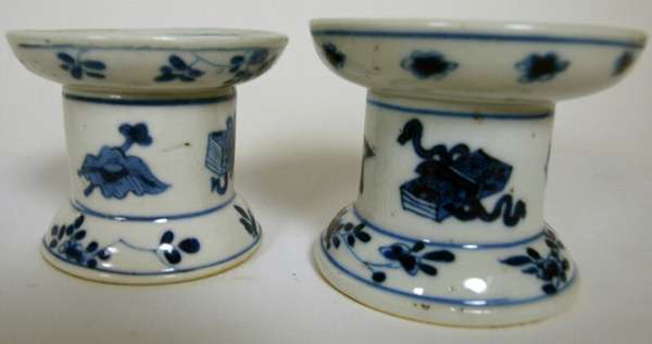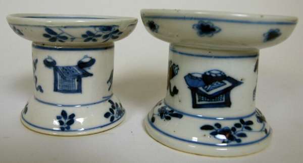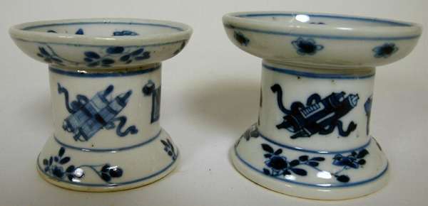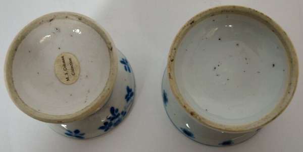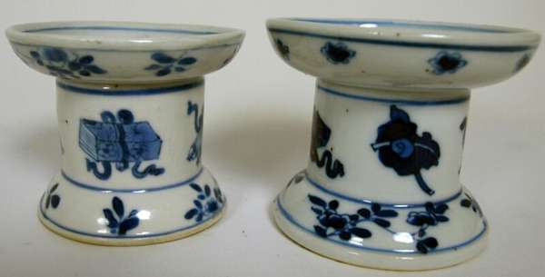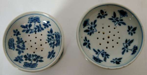 Two similar Chinese blue painted porcelain pounce pots Kangxi period