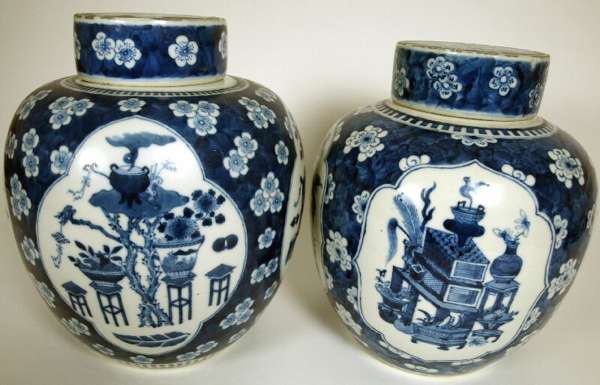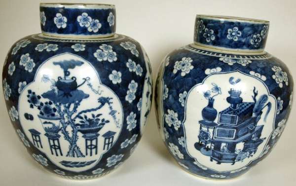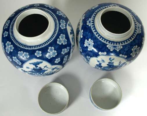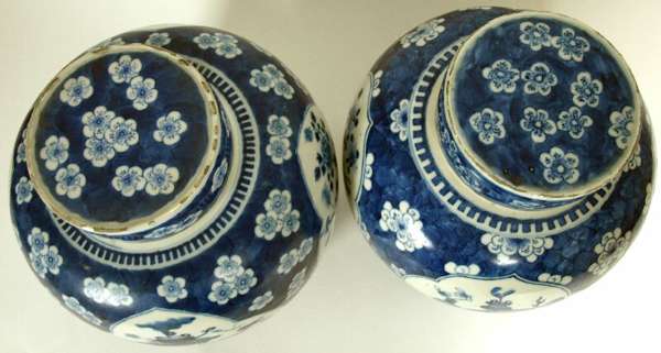 A matched pair of 19th century Chinese blue and white ginger jars and covers