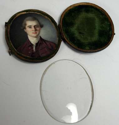 watercolour on ivory, signed 'J.P.' in a shagreen case, 6cm x 5cm; and another miniature, attributed to John Plott of William Creech's intended, watercolour on ivory, in a shagreen case, 6cm x 5cm (2)