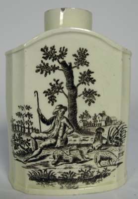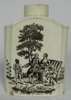 of canted rectangular form with sloping shoulders, decorated with opposed printed monochrome decoration of pastoral figural scenes