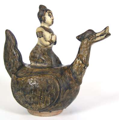 A 15th/16th century Thai pottery figure riding a kinnara, Sawankhalok period