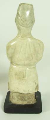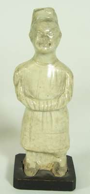 tallest 23cm high; together with a smaller attendant, 19cm high, including fitted wood stand (3)
