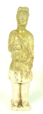 Two similar Chinese straw glazed earthenware figures, Sui/early Tang Dynasty