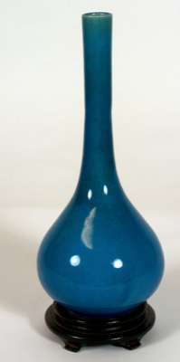 An 18th century Chinese crackle glazed monochrome turquoise bottle vase