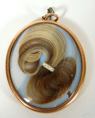 watercolour on ivory, surrounded by a seed pearl and woven hair border, the verso with a woven hair design