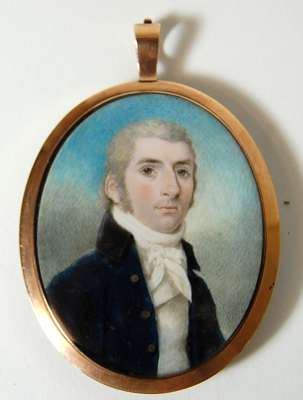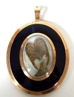 watercolour on ivory, the verso with hair design and blue glass border, the frame inscribed 'Charles Larkin'