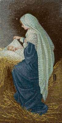 of the Madonna and Holy Child in the stable, original label to reverse, in a gilt frame