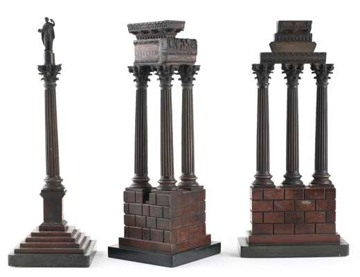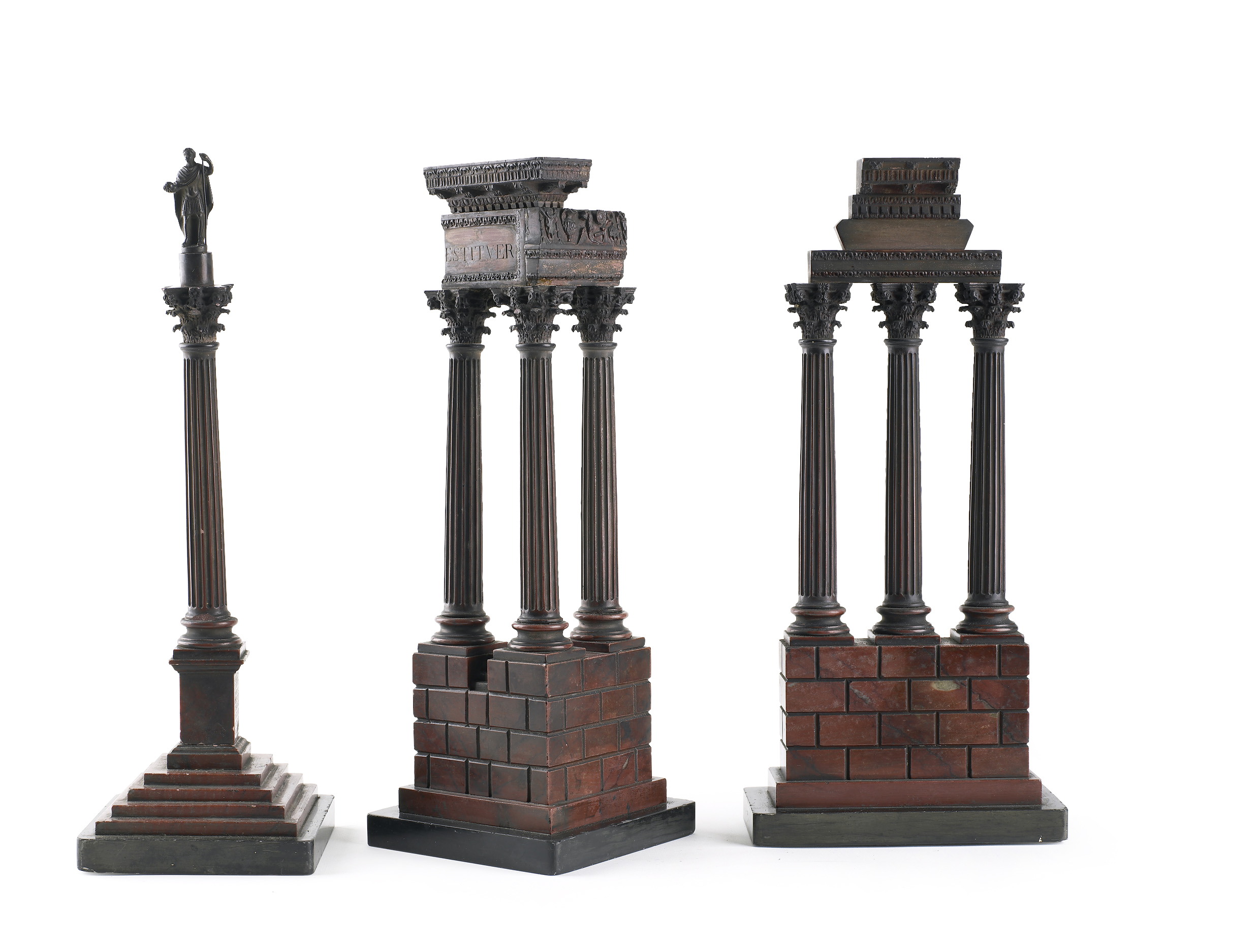 Three Italian 19th century rouge marble models of the Forum ruins