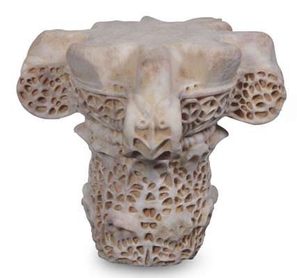 of stylised four-lobed corinthian design, the whole with deep bas relief carved roundels and foliate figures SENT TO PAUL BEATSON STORE IN LONDON FOR COLLECTION
