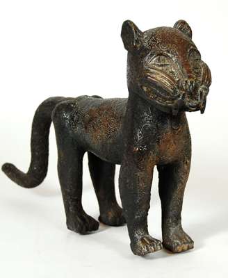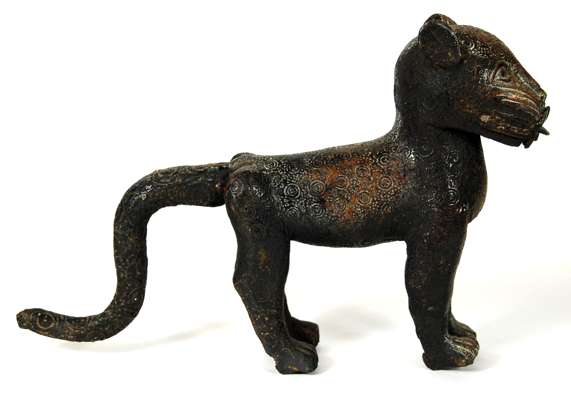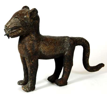 Bronze Leopards were often used as royal water vessels - the water was poured from the mouth over the Oba's hands in cleansing rituals. They were kept on royal altars.