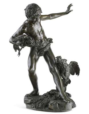 BOY WITH TWO FIGHTING COCKERELS