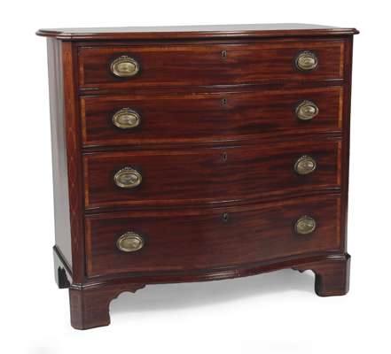 of four long graduated and cockbeaded drawers with patera cast gilt metal handles and guilloche inlaid uprights, on bracket feet
