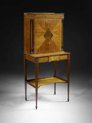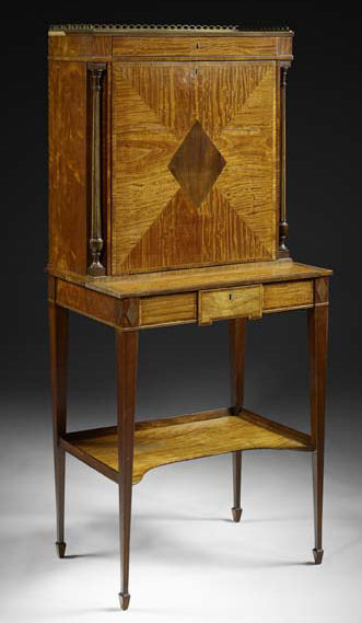 A George III satinwood, mahogany and crossbanded writing cabinet, circa 1790 In the Sheraton taste