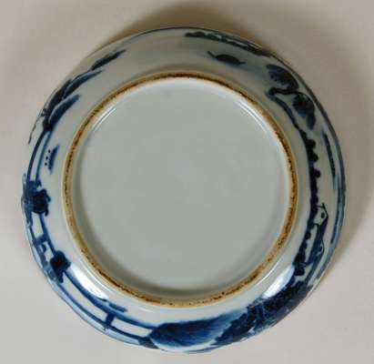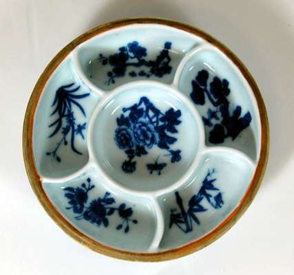 A Chinese blue painted sweetmeat dish and cover, Qianlong mark but later