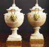 PAIR OF LOUIS XV STYLE ALABASTER AND GILT BRONZE MOUNTED URNS