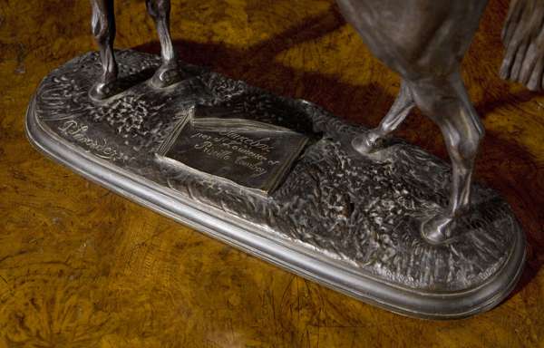 bronze, dark brown patina, oval base bears plaque inscribed 'Saucebox, Par St. Lawrence et, Priscilla, Tomboy'