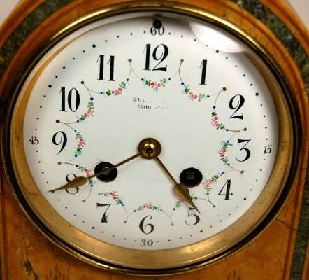 FRENCH SIENA AND VERDE MARBLE MANTEL CLOCK