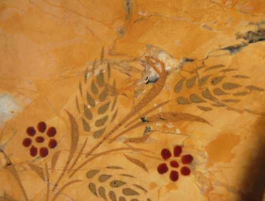 case sgned J. Bendix, Paris, the white enamal dial painted with floral garlands, with a gong striking 8-day movement, the arched case with a foliate pietra dura decorated apron, raised on a plinth base