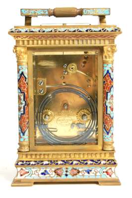 FRENCH CHAMPLEVE ENAMEL CARRIAGE CLOCK