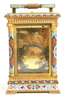 the white enamel dial painted with floral garlands and enriched with gilt, the 8-day movement striking on a gong, within an ornate coloured enamel gorge type case