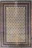 the cream field with allover boteh lattice pattern, within similar red border between cream and indigo bands