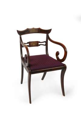 SET OF SIX REGENCY FAUX ROSEWOOD DINING CHAIRS