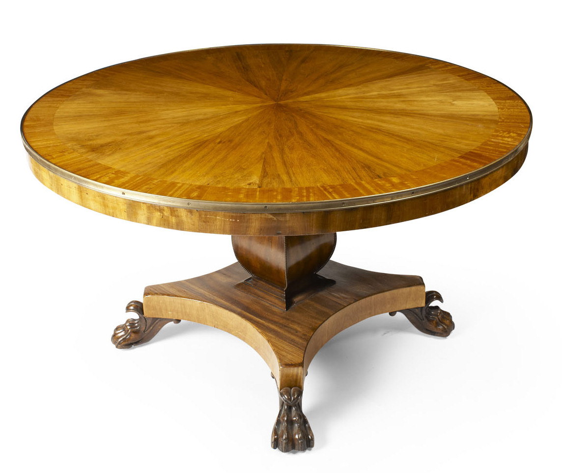 REGENCY ROSEWOOD AND MAHOGANY BREAKFAST TABLE