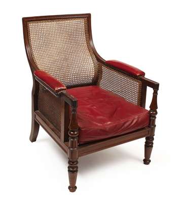REGENCY MAHOGANY AND LEATHER UPHOLSTERED LIBRARY ARMCHAIR