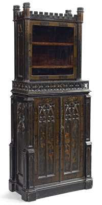 VICTORIAN JAPANNED GOTHIC REVIVAL DISPLAY CABINET