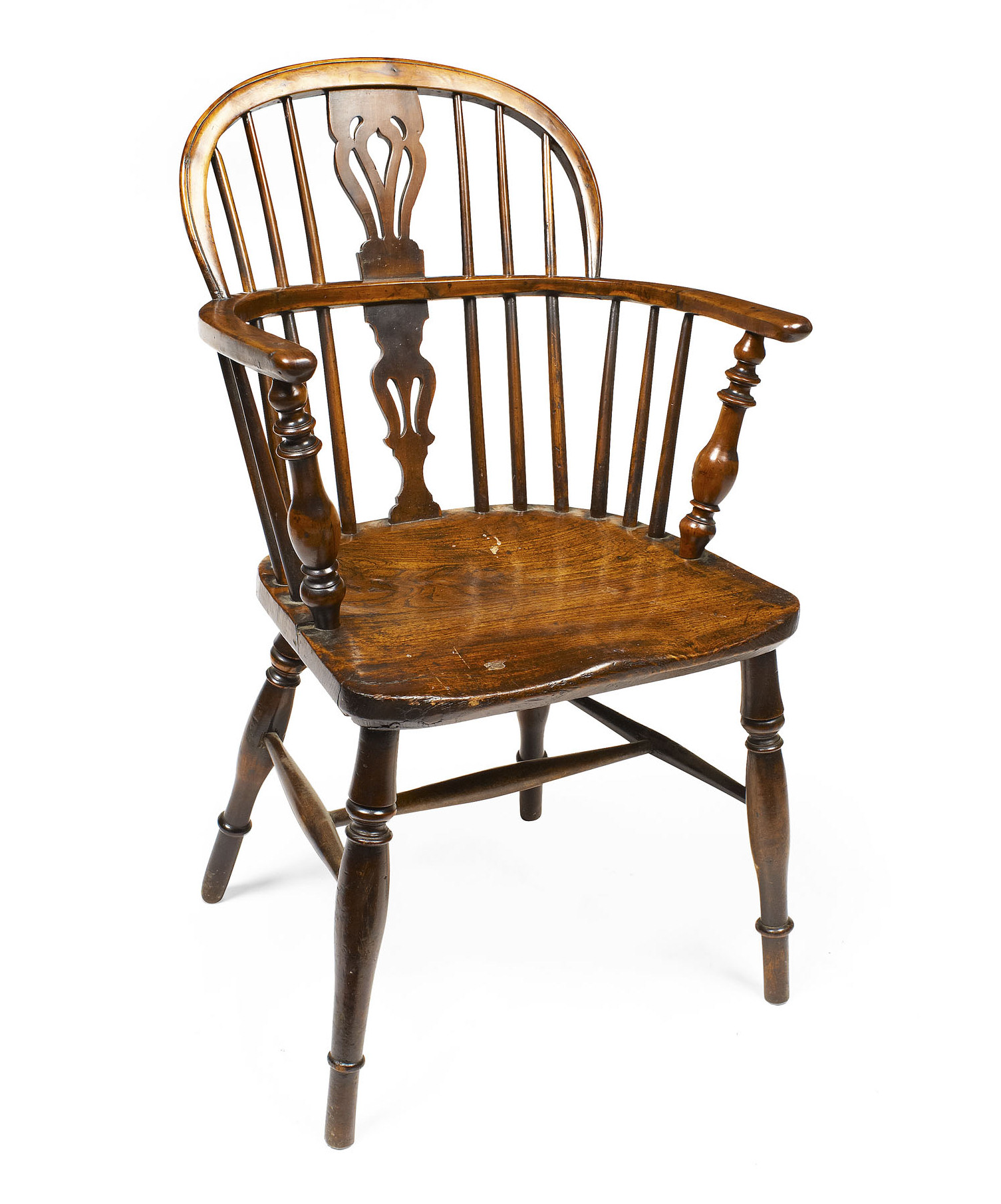 VICTORIAN ELM AND YEW WOOD WINDSOR ARMCHAIR