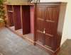 the moulded breakfront top above open adjustable shelves, flanked by panelled cupboard doors, raised on a plinth base, bears Waring & Gilllows trade label
