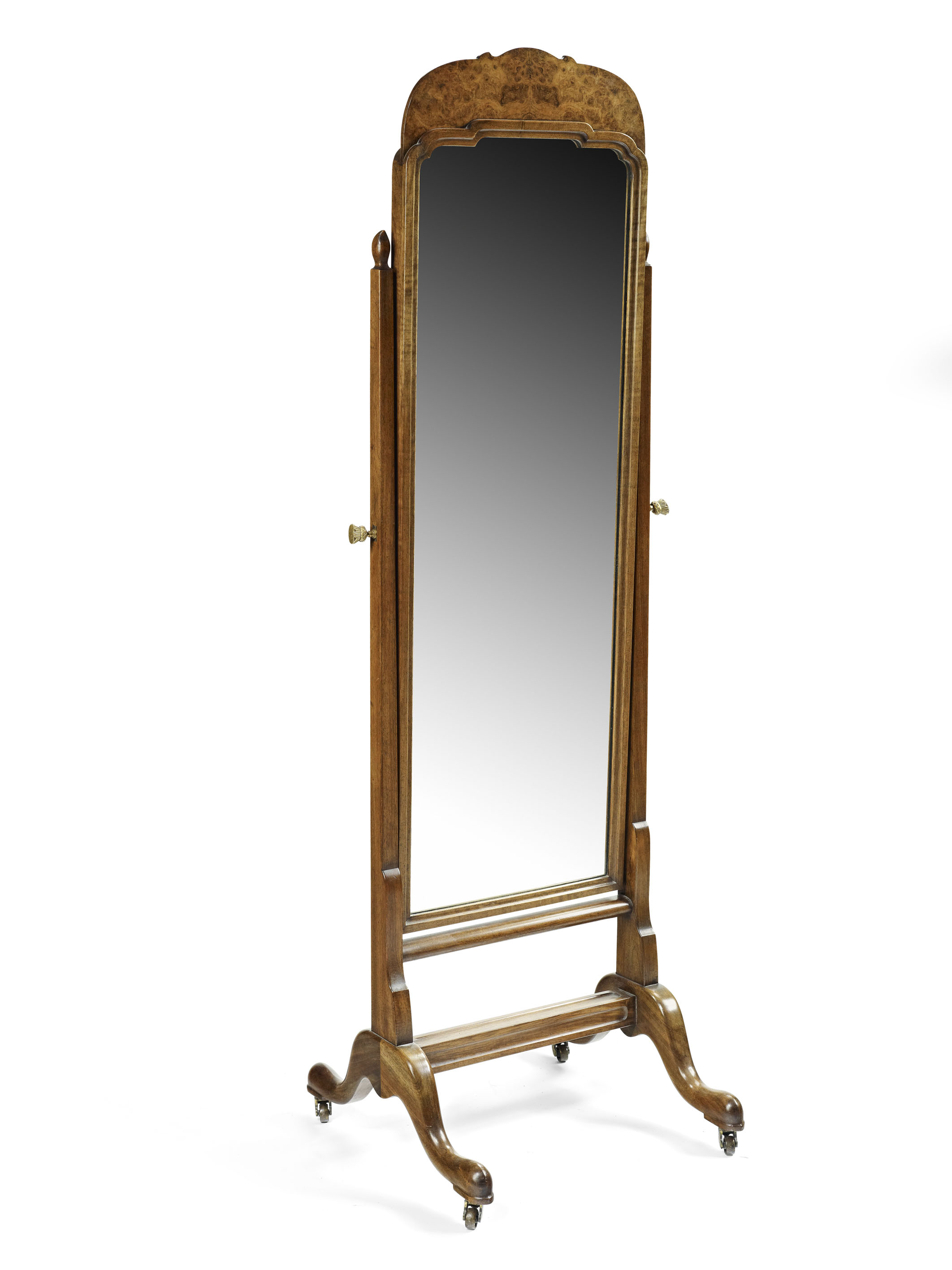 the domed mirror with a bevelled plate, raised on cabriole legs