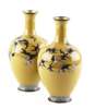 each with slightly flared neck above ovoid body, decorated with swallows in flight on a mustard ground, above a narrow lower border of waves (2)