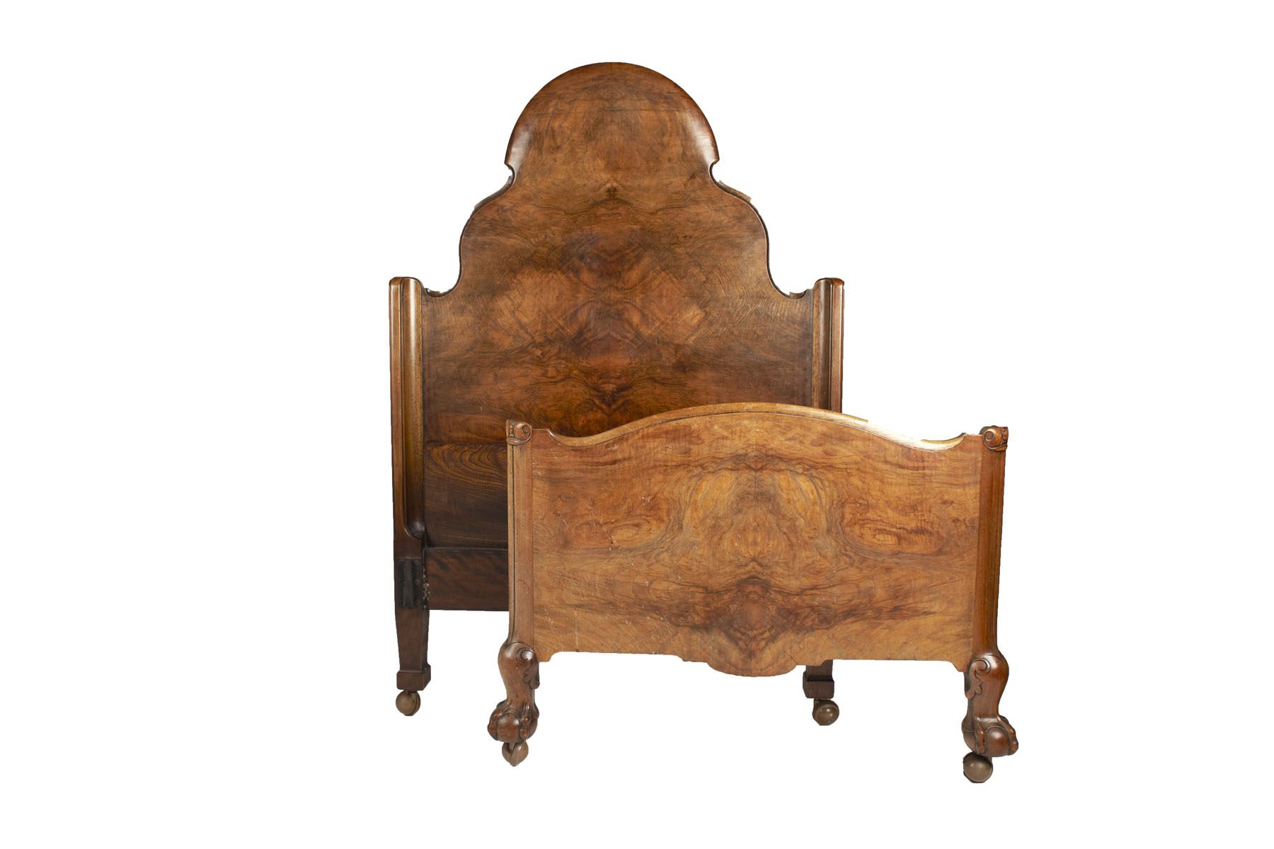 the domed head and foot boards raised on cabriole legs ending in cared claw and ball feet