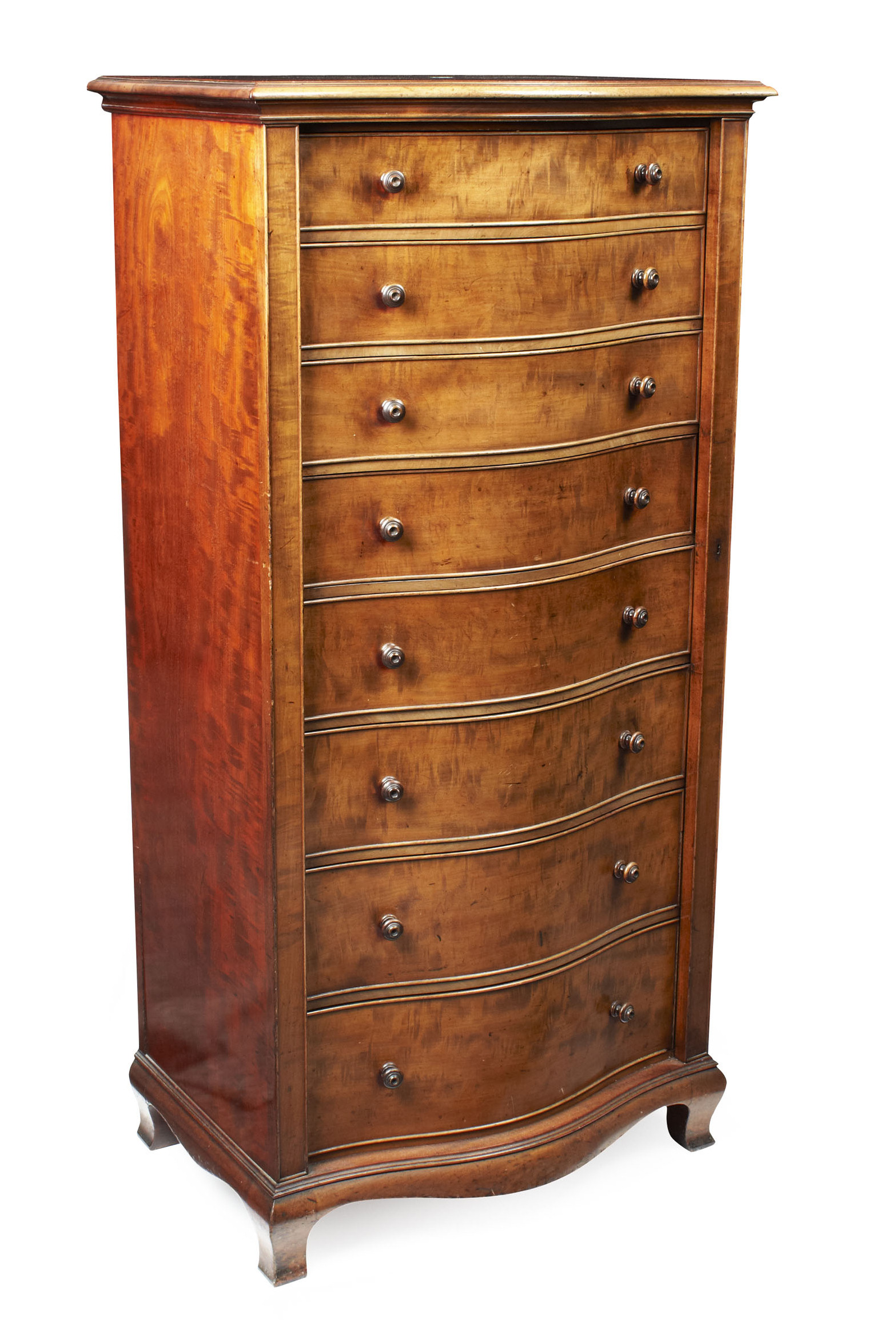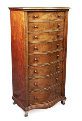 FINE VICTORIAN FIDDLE MAHOGANY SERPENTINE WELLINGTON CHEST †