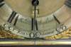 the arched dial with silvered chapter ring, subsidiary second dial, date appeture and pierced brass spandrals, the single train fusee movement with foliate engraved backplate, the dome case with a brass carrying handle, raised on a moulded plinth base with bracket feet