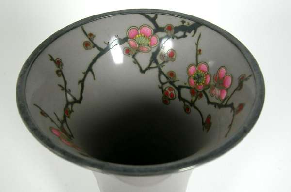 of trumpet form, decorated with prunus blossom to both the interior and exterior, on a beige ground, signature mark to base
