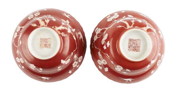 PAIR OF CHINESE IRON RED GLAZED BOWLS