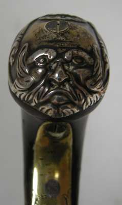the brass action signed Turvy on one side and London on the other, with walnut short curved stock inlaid with silver wire decoration and with silver grotesque mask butt cap; and a small copper pistol flask with two base compartments for balls (2)