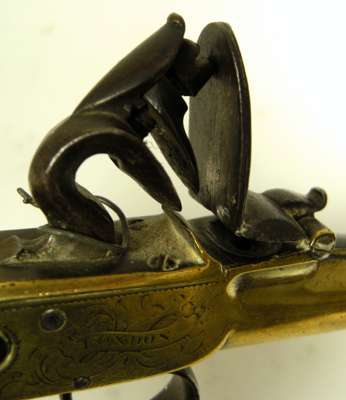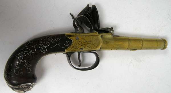 ENGLISH SILVER MOUNTED FLINTLOCK BOXLOCK TURN OFF CANNON BARREL POCKET PISTOL