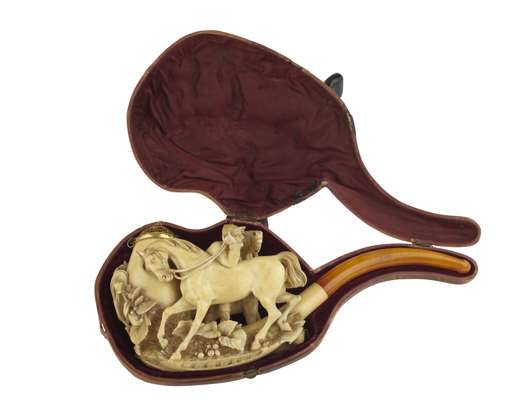 FINE CASED SILVER GILT MOUNTED MEERSCHAUM PIPE