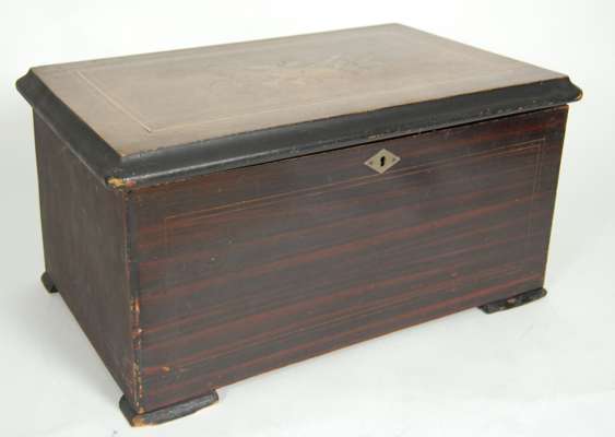 SWISS ROSEWOOD AND MARQUETRY INLAID MUSIC BOX