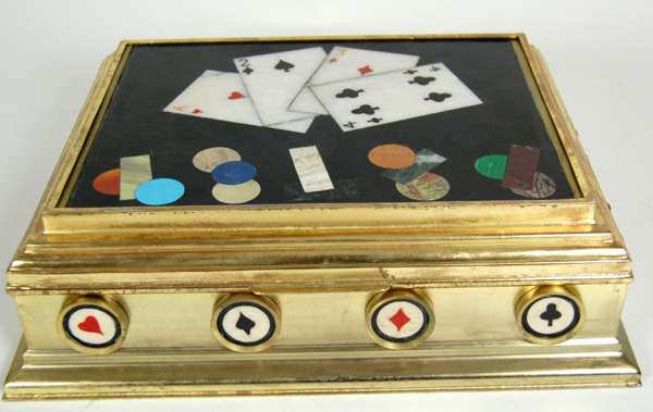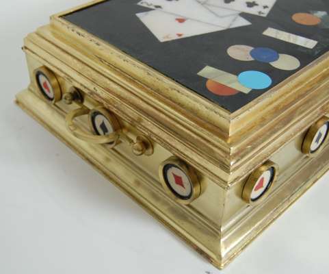 GILT BRONZE AND PIETRA DURA GAMES BOX