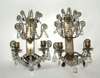 with bead moulded back plates, from which issue outscrolling branches hung with faceted and pear shaped drops, terminating in two candles nozzles (2)