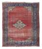 the plain red field with central camel lozenge medallion, similar spandrels, within indigo rosette and vine border between camel bands (worn)