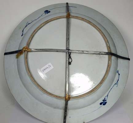 decorated with bold chrysanthemum heads and rockwork to the well and with flower sprays to the border