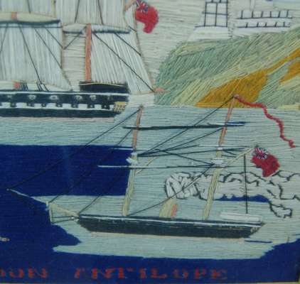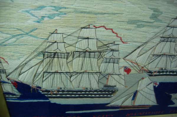 NOTE: PROBABLY 20TH CENTURY, NOT VICTORIAN, SHIP WOOLWORK PICTURE