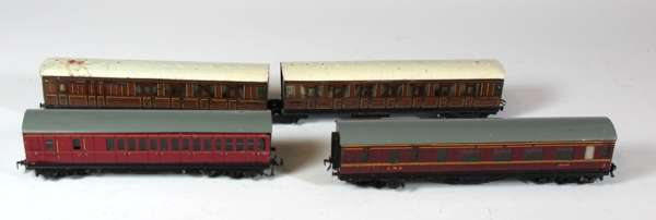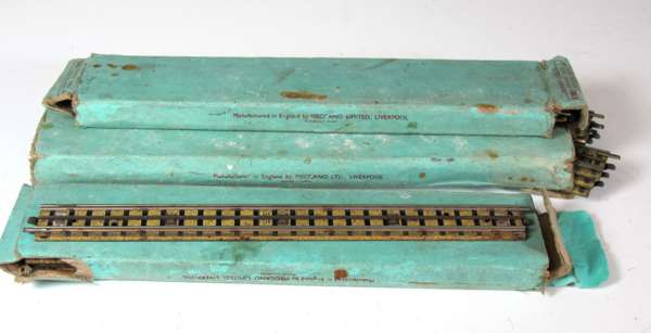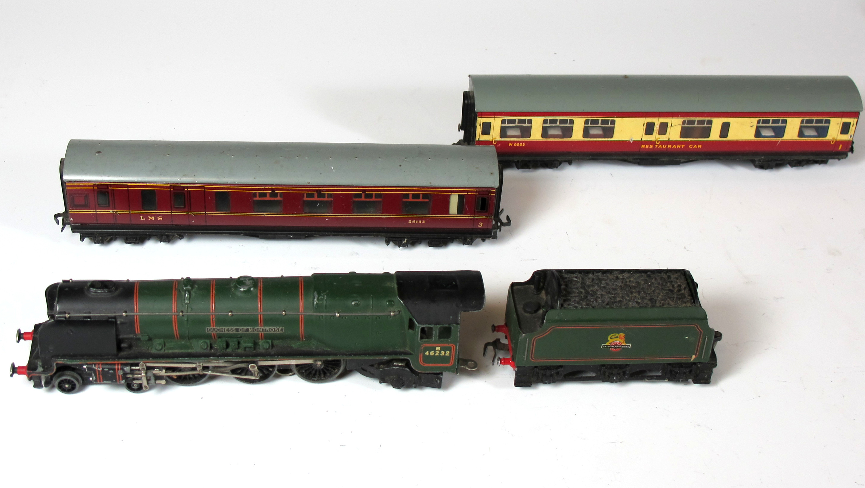 to include 'Duchess of Montrose' locomotive, two LM.S. carriages, restaurant car, three further carriages, a quantity of boxed goods cars, track etc. (poor condition) (qty)